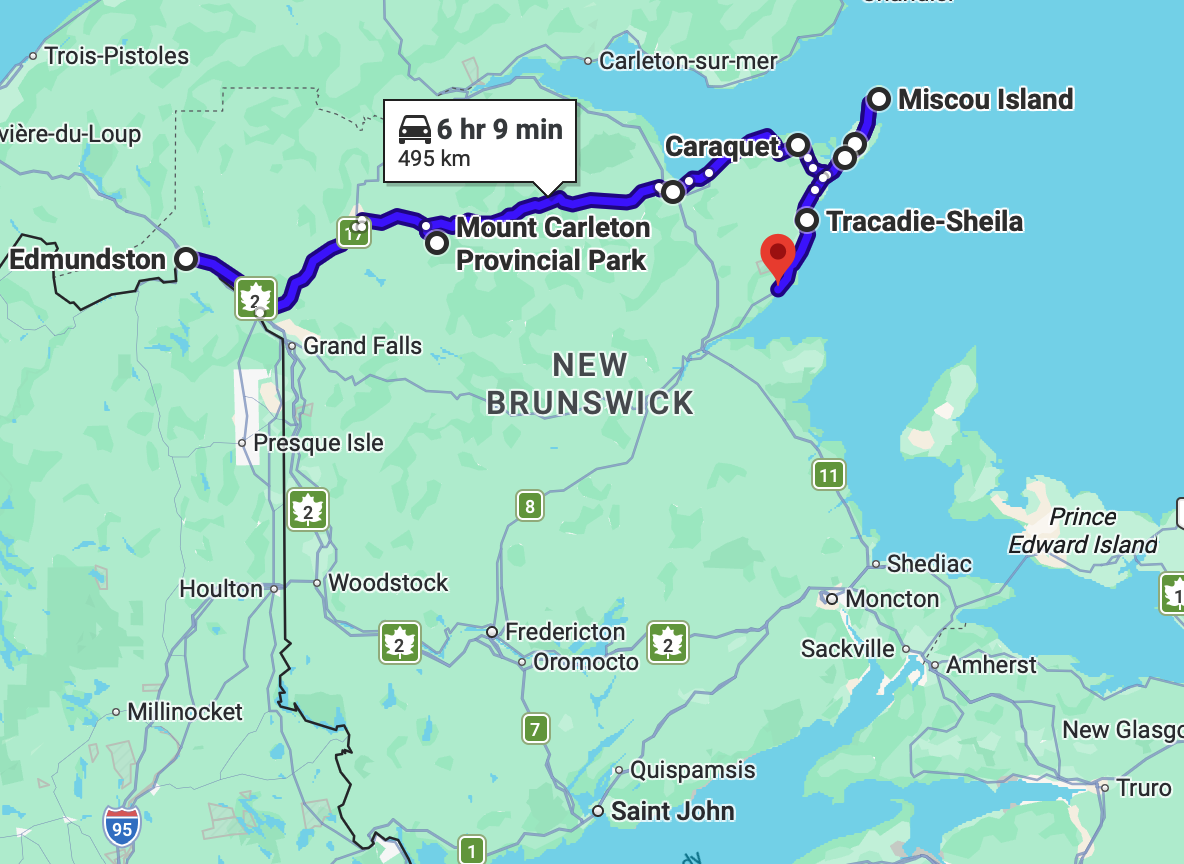 We’ve included a map below so you can easily see this Acadian Peninsula road trip and adjust it based on your time and travel style.