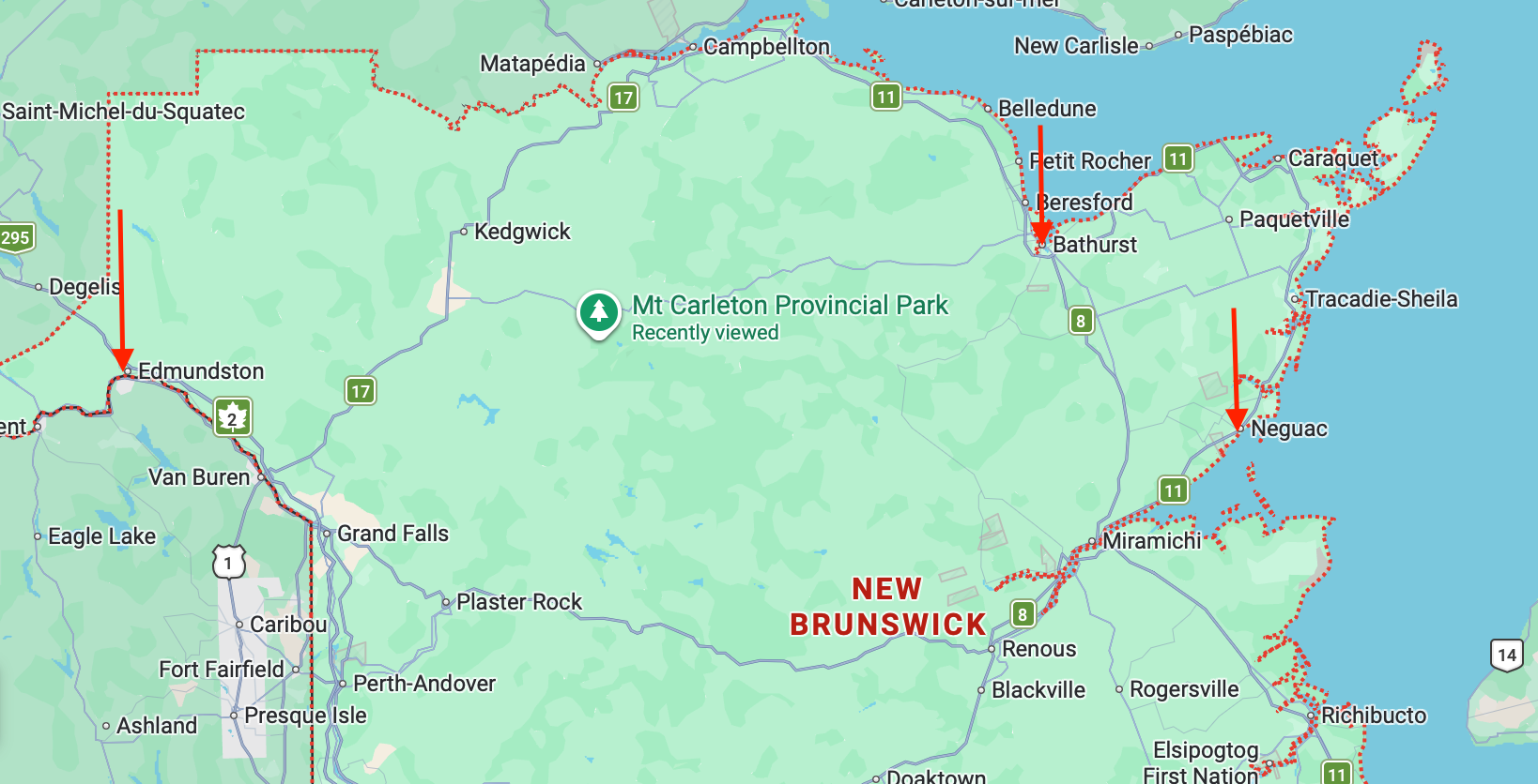 From Mount Carleton, it’s about a one-hour drive to Bathurst.