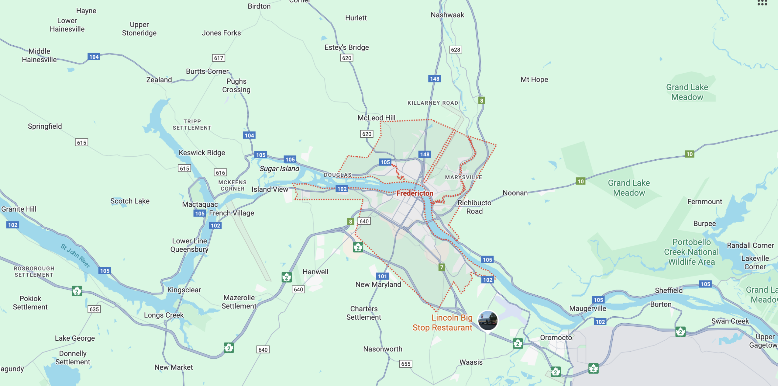 This was the route we drove during our trip. It took about 1.5 hours to reach Fredericton, and the drive itself was beautiful.