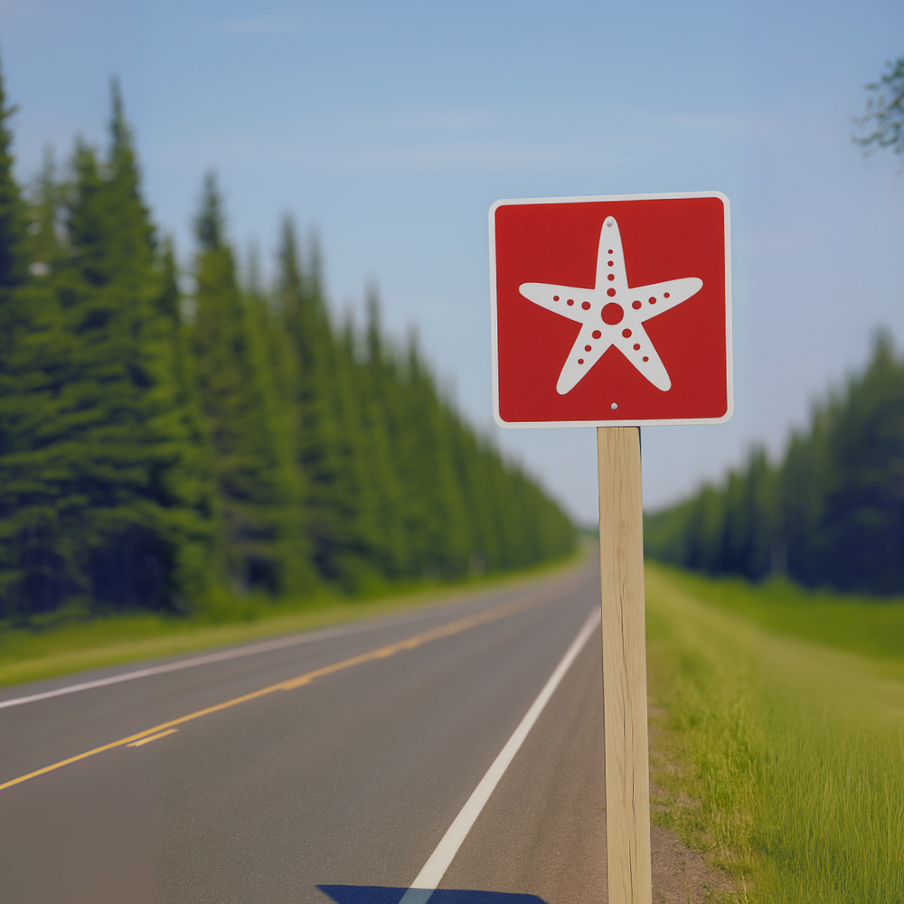 The Acadian Coastal Drive itself is marked with a traffic sign showing a white star on a red background, helping you follow the route.